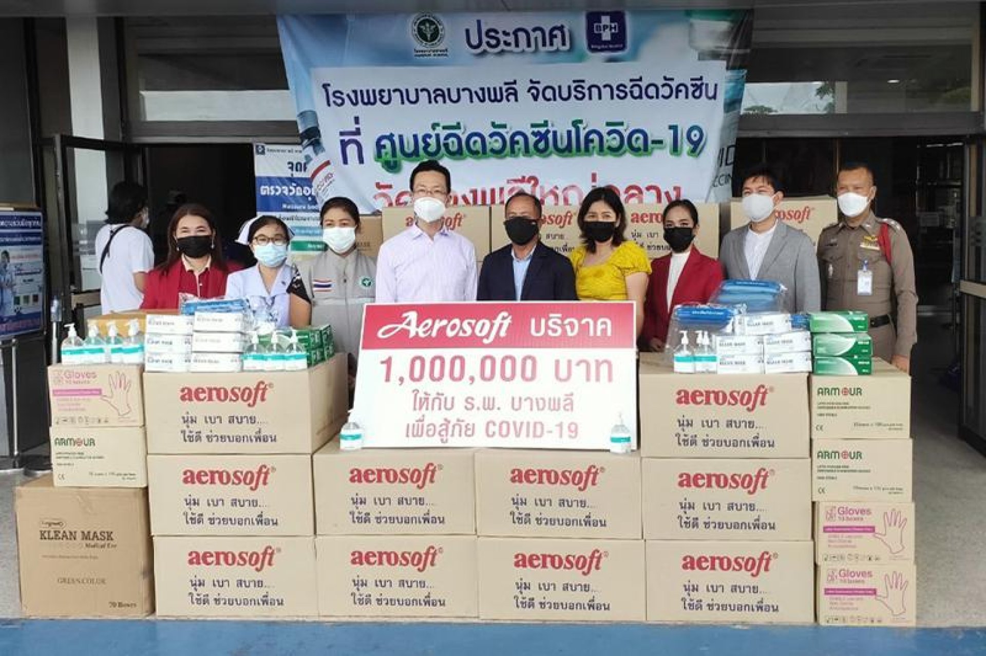 หน้ากากอนามัย 700 กล่อง และถุงมือทางการแพทย์ จำนวน 15 ลัง ให้กับโรงพยาบาลบางพลี เพื่อสู้ภัย COVID-19